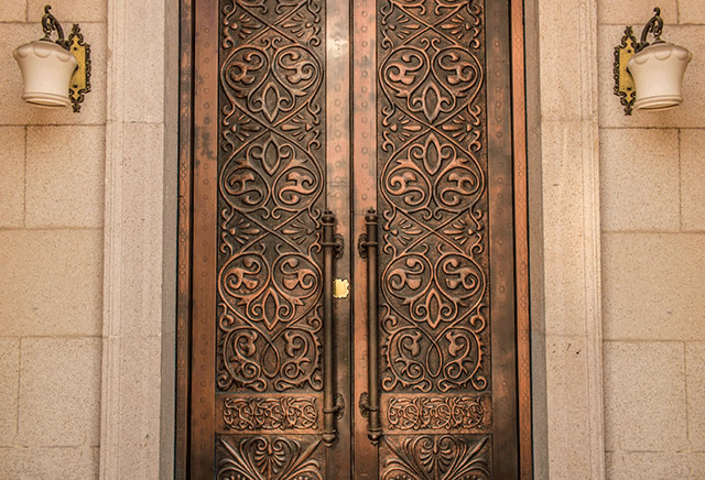 2. If cement falls on the copper door surface, and the cement is dry, first rinse the cement with water and use a hammer to remove large pieces of cement. Then, use a brush to remove the remaining cement.